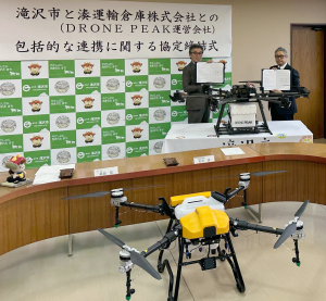 滝沢市と包括連携協定を締結しました 2025年4月8日 令和7年3月27日(木)、ドローンピークは滝沢市と小型無人航空機の活用について相互の包括連携協定を締結いたしました。超高齢化社会における働き手、担い手不足等諸課題が山積する中、官民一体で地域のドローン活用促進に尽力して参ります。 当日、すべり込みでデモ機が到着!マゼックスの新型農薬散布15L機「飛助15」初お披露目の機会にもなりました。