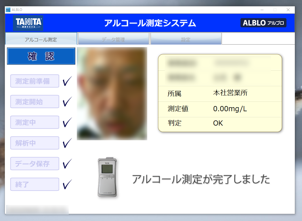 遠隔地でのアルコールチェックに長距離部門、全車採用。 画像添付と共にアルコール検知数値をメール受信。「あたりまえ」の安全を、より確実なものとすると共に、顧客への信頼を数値化する取り組みと考えています。